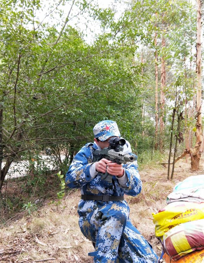 兩隊隊員在隊長的指揮和布陣下,進入訓練陣地,時刻準備著殲滅敵軍,有的采取主動出擊、搶占先機,有的采取堅守陣地,有的迂回運動,有的隱秘草叢,有的左右夾擊,一時間廝殺的難解難分,點射聲掃射聲此起彼伏。