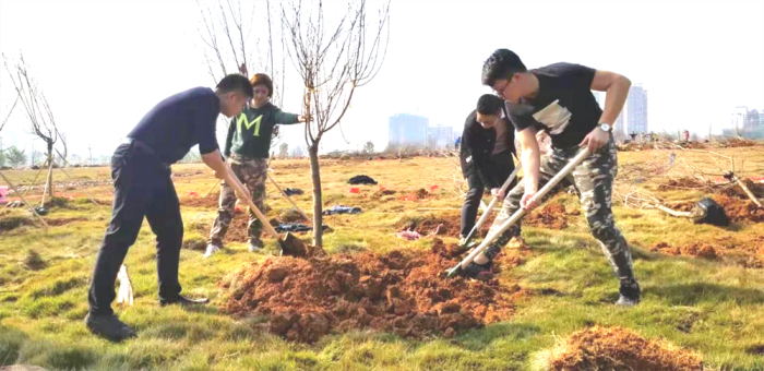 在活動負(fù)責(zé)人進(jìn)行任務(wù)布置、流程講解后,城投集團(tuán)團(tuán)委的青年們便開始了有序的植樹活動。大家分工明確、齊心協(xié)力,揮舞鐵鍬翻新土,扶植新苗列成行,呈現(xiàn)出一派熱火朝天的勞動場面。