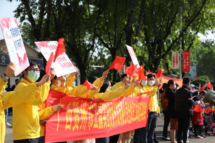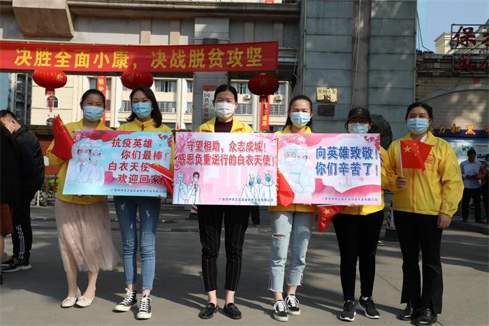 發(fā)布時間:2020-04-15 作者:文字/何莎莎 視頻/陸陽楊 圖片/義潔 來源:本站原創(chuàng) 審核:湯彩燕4月15日下午,賀州支援湖北醫(yī)療隊33名隊員圓滿完成工作任務(wù)凱旋而歸。賀州正贏實業(yè)公司黨支部組織全體黨員干部職工一行到賀州大道迎接英雄歸來,開展“致敬英雄,擔(dān)當(dāng)作為”主題黨日活動。
