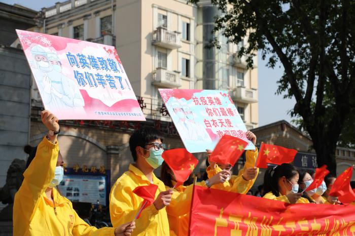 自新冠肺炎疫情發(fā)生以來,賀州市共派出33名醫(yī)護骨干和1名防疫專家緊急馳援湖北開展醫(yī)療救治工作。他們帶著賀州市委、市政府的囑托和關(guān)懷,帶著家鄉(xiāng)246萬人民的牽掛和關(guān)心,義無反顧投身抗擊疫情第一線。他們以信心、勇氣和醫(yī)技為疫區(qū)群眾筑起了堅強的健康長城,不負黨和人民托付,彰顯了敬佑生命、救死扶傷、甘于奉獻、大愛無疆的崇高精神,詮釋了醫(yī)護工作者的初心使命,充分展現(xiàn)了新時代賀州人民的責(zé)任擔(dān)當(dāng)和精神風(fēng)貌。
