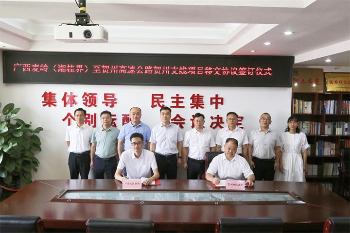 廣西麥嶺(湘桂界)至賀州高速公路賀州支線項(xiàng)目移交簽約儀式在城投集團(tuán)舉行