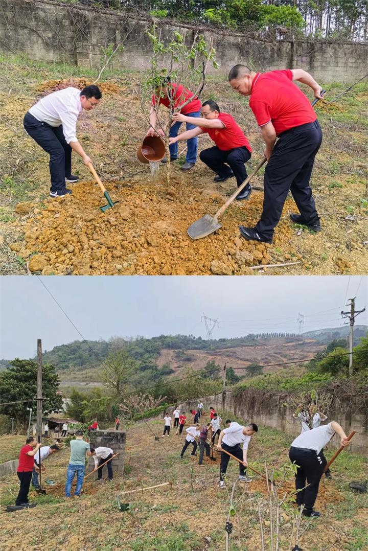 一年“植”計在于春,植樹活動現(xiàn)場熱火朝天,全體黨員熱情高漲、干勁十足,有的揮鍬鏟土、有的扶苗定根、有的培土踩實、有的澆水灌溉,到處都是忙碌的身影。經(jīng)過一個多小時的勞作,大家齊心協(xié)力將一棵棵樹苗“安家落戶”,為水廠營造綠色環(huán)境。