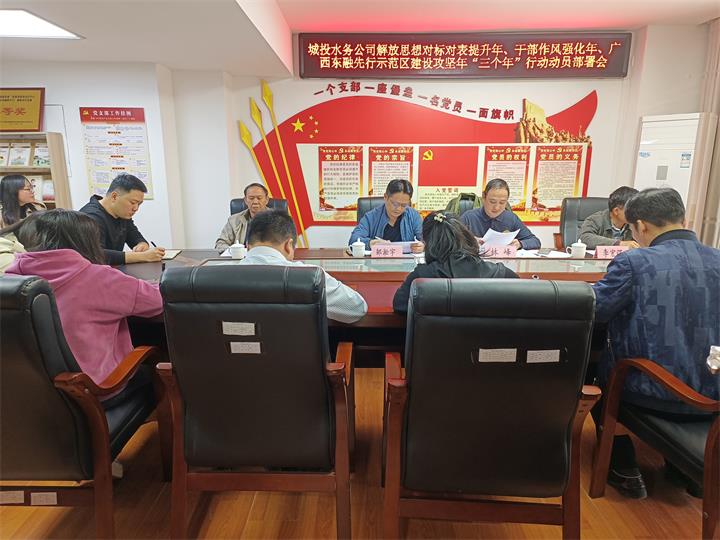 水務(wù)公司召開本公司“三個年”動員部署會,會議強(qiáng)調(diào),要聚焦“是否敢想敢闖、是否敢試敢干、是否敢學(xué)敢行、是否敢比敢超”四個層面查找解決問題,以雷霆萬鈞之勢抓好各項(xiàng)工作落實(shí)落細(xì),堅(jiān)決反對形式主義、官僚主義,重實(shí)效強(qiáng)實(shí)干抓落實(shí),在解決水務(wù)工作具體問題上下功夫。勇于扛起政治責(zé)任,努力在“三個年”行動中形成一批實(shí)踐、理論和制度成果。