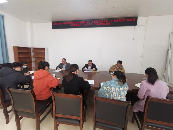 小貸公司召開本公司“三個年”動員部署會,要求公司上下要進(jìn)一步解放思想,強(qiáng)化作風(fēng)建設(shè),重實(shí)效、強(qiáng)實(shí)干、抓落實(shí),以“三個年”活動為抓手,聚焦信貸業(yè)務(wù)發(fā)展加油干、強(qiáng)化風(fēng)險(xiǎn)防控不松勁、改進(jìn)干部作風(fēng)不停步,以作風(fēng)的轉(zhuǎn)變推動公司高質(zhì)量發(fā)展。